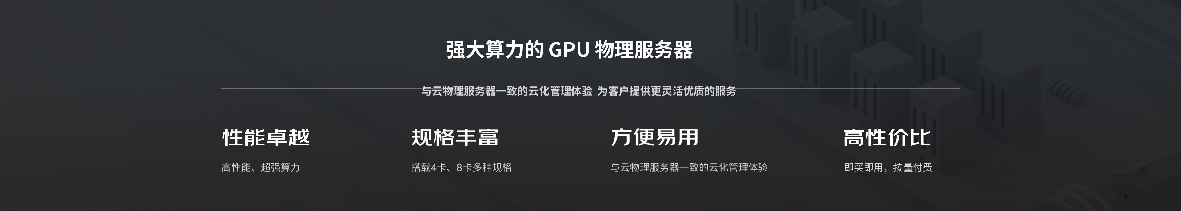 最新推出4卡、8卡规格,提供多种不同配置GPU物理服务器,无虚拟化性能损耗,满足客户的不同业务需求场景。